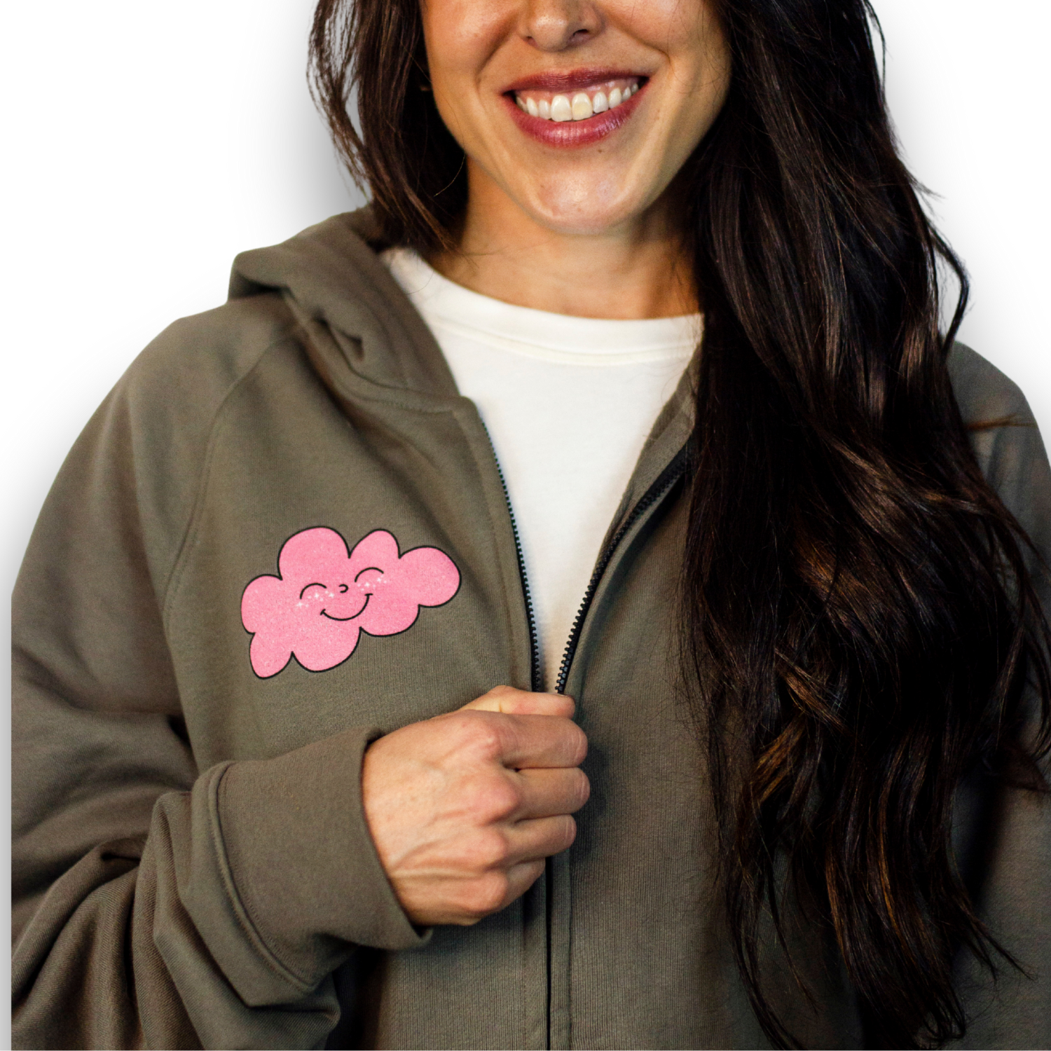Let the world know you're floating on a pink cloud in this oversized, full-zip hoodie that's cozier than the one you stole from your ex. The bold print is the moment while fleece-lining feels like you just crawled inside a fluffy cloud. The soft-pockets are ready and able to store you emotional support chapstick and that bag of doritos you're saving for later. If you love long, soft sleeves that double as mittens in cold weather, look no further.