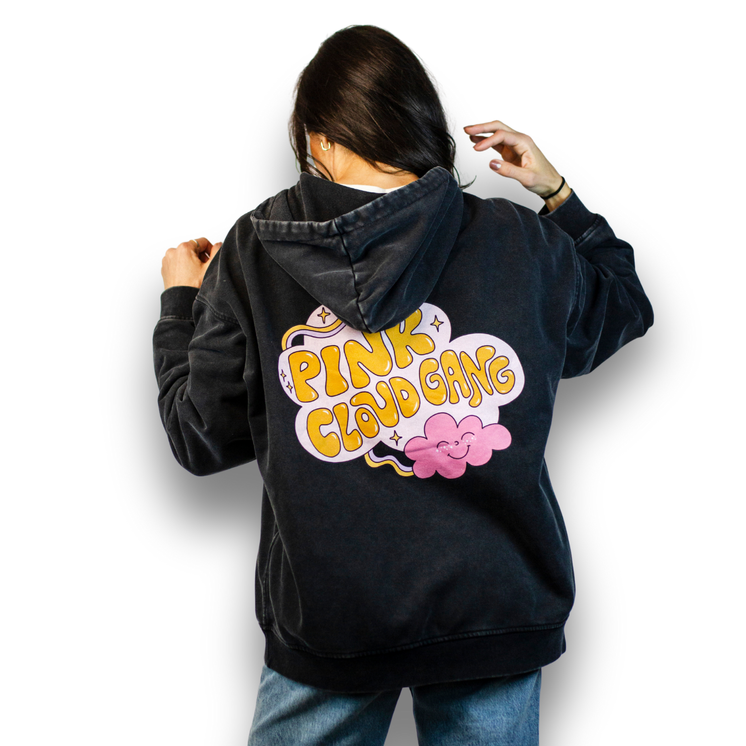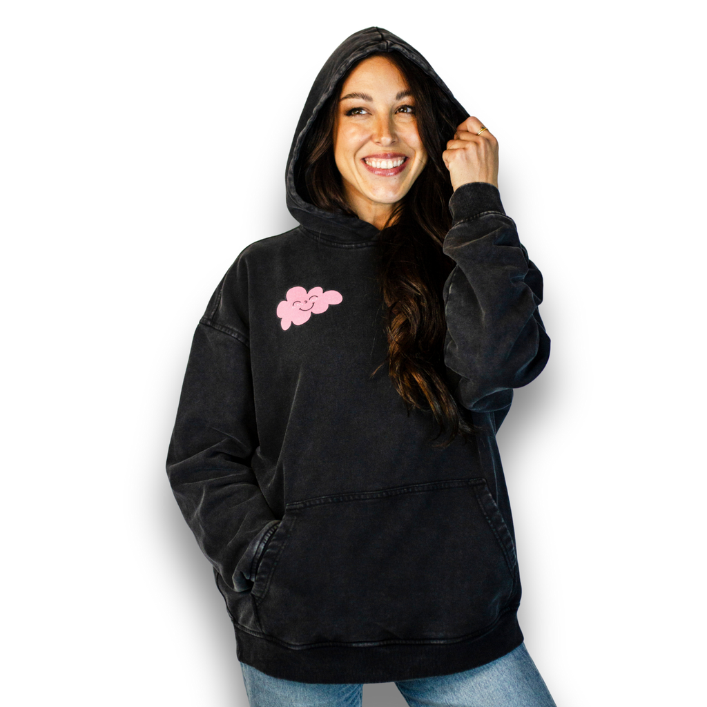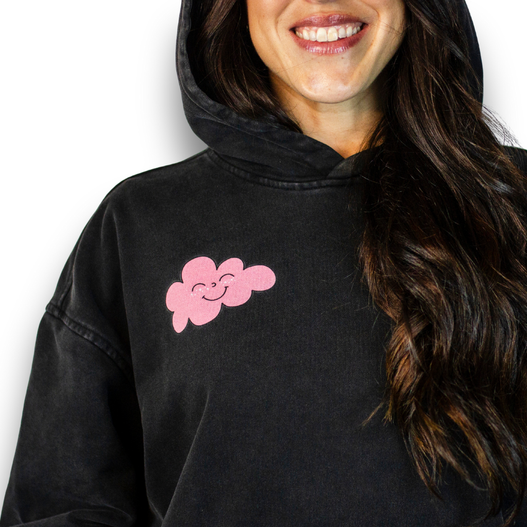 This Pink Cloud Gang hoodie is the oversized, season-shifting, cozy-gremlin uniform you’ll reach for every single day. Made from 100% combed cotton (natty fibers babyyyy), it’s thick, dreamy, and feels like being hugged by the universe (or at least by a fellow sober baddie who gets it).